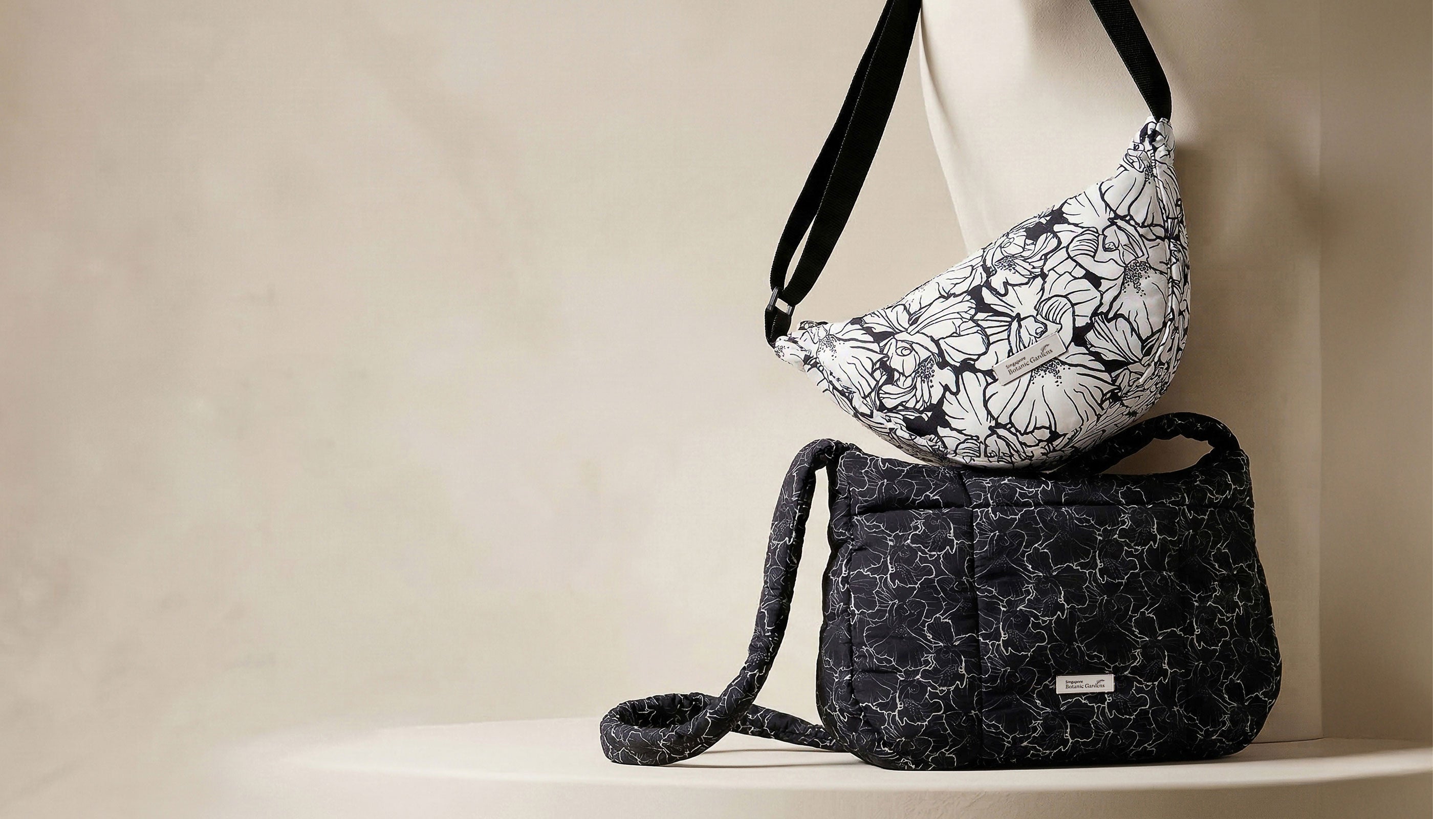 Botanical illustrations meet eco-friendly, high-performance nylon crafted with advanced weaving. Available in four versatile styles with lightweight comfort and a refined, structured sheen.