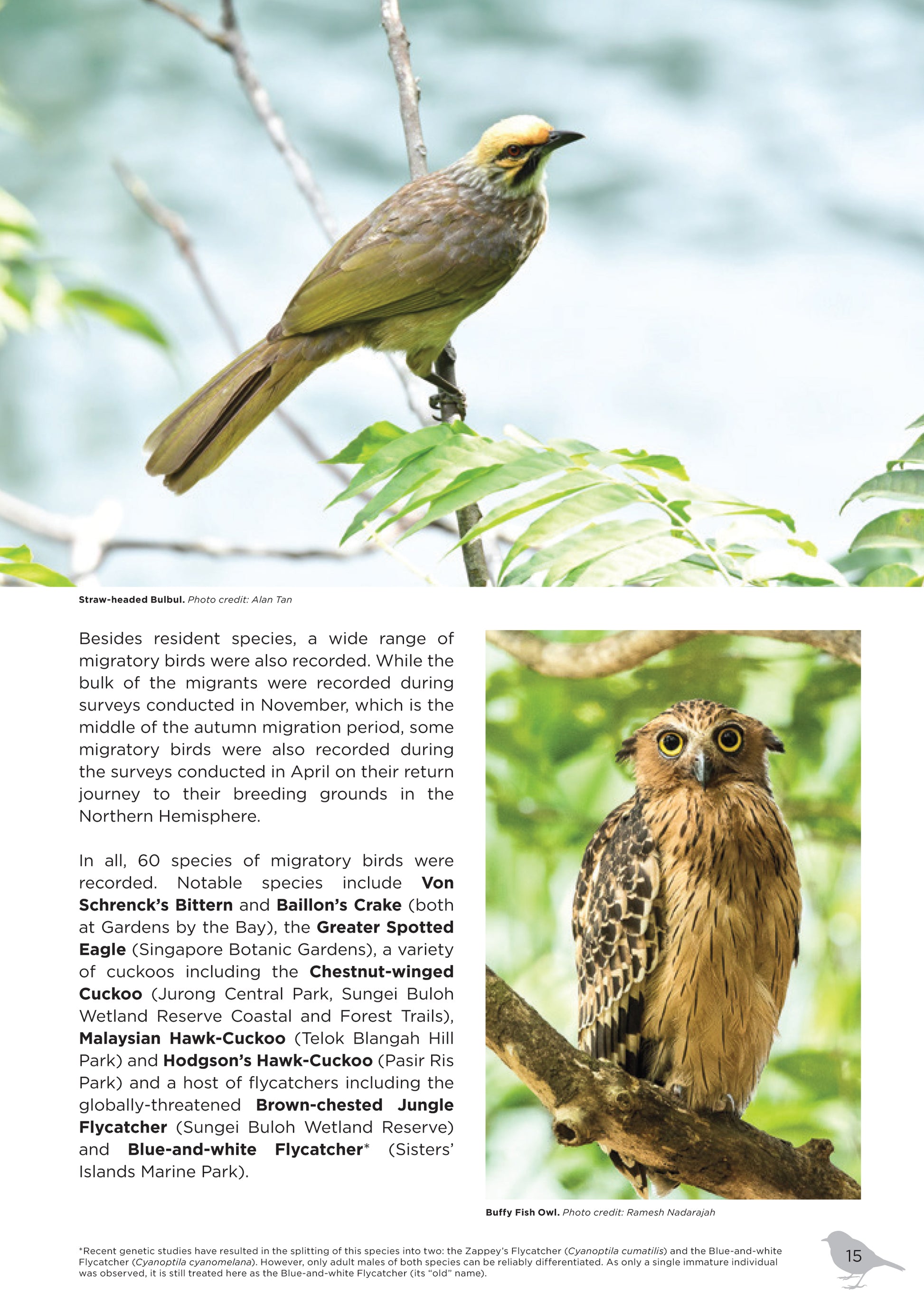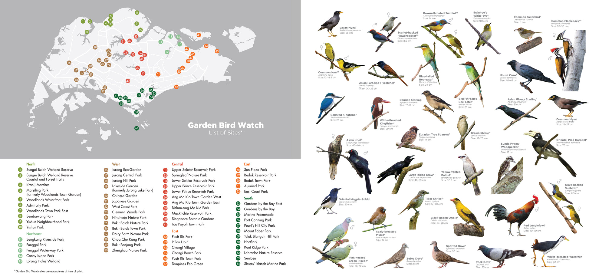 A Review of Garden Bird Watch (2015–2019) showcases the results of a citizen science initiative by NParks to survey birds in parks, gardens and other green spaces across Singapore over the past five years. The book highlights 50 featured species through beautiful photographs and includes information about their characteristics, distribution and population trends over the five-year period. It also touches on the importance of citizen science and highlights sites for good bird watching in Singapore.