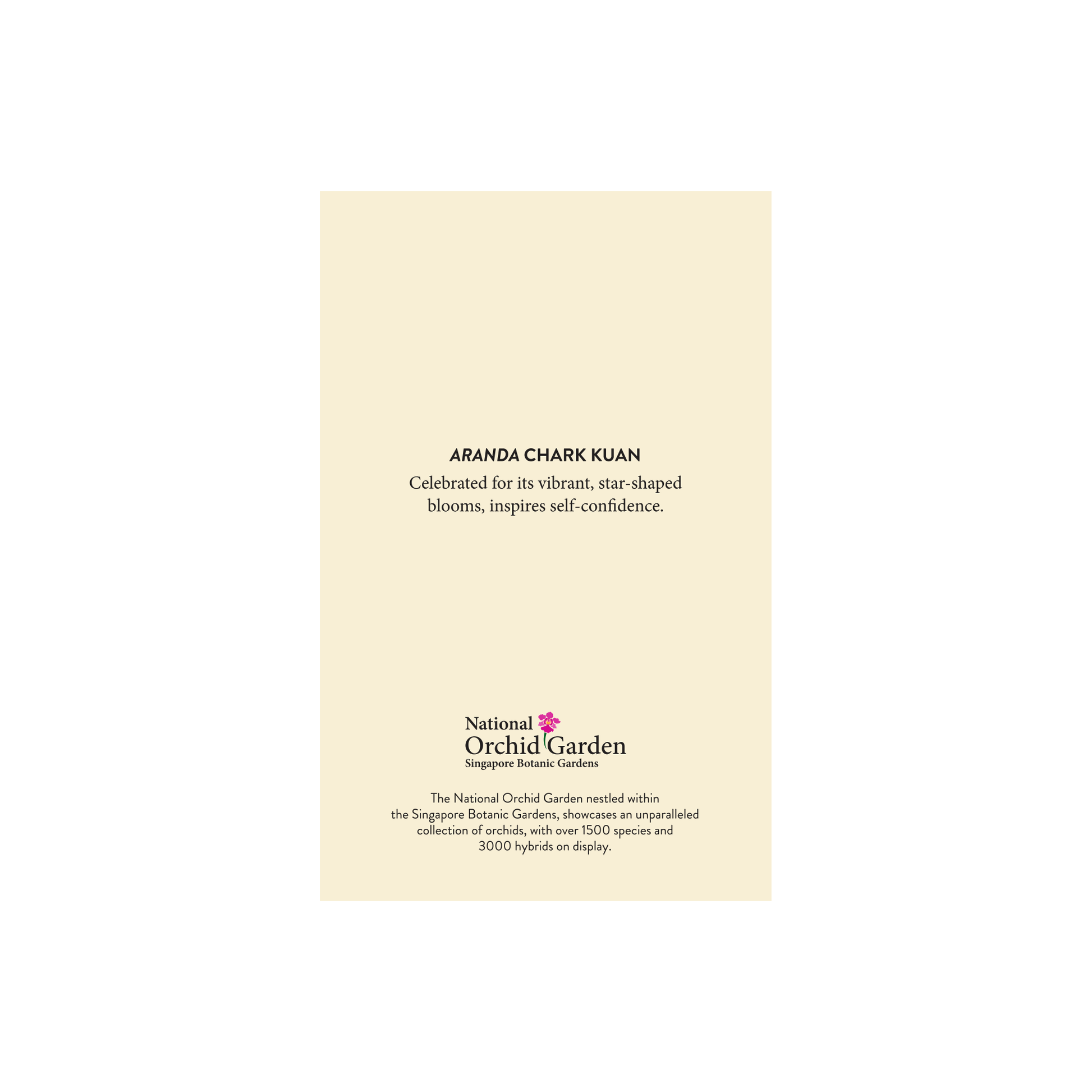A graceful tribute to nature’s finest muse, this series of bookmarks feature a unique collection of 12 individual orchid breeds, each delicately etched to reflect the breathtaking diversity found within the Singapore Botanic Gardens. From the rare to the radiant, every unique bloom tells a story of resilience, beauty, and heritage. Finished with a soft tassel, it brings a touch of botanical elegance to every reading moment, a timeless keepsake for nature lovers and seekers of meaningful mementoes.