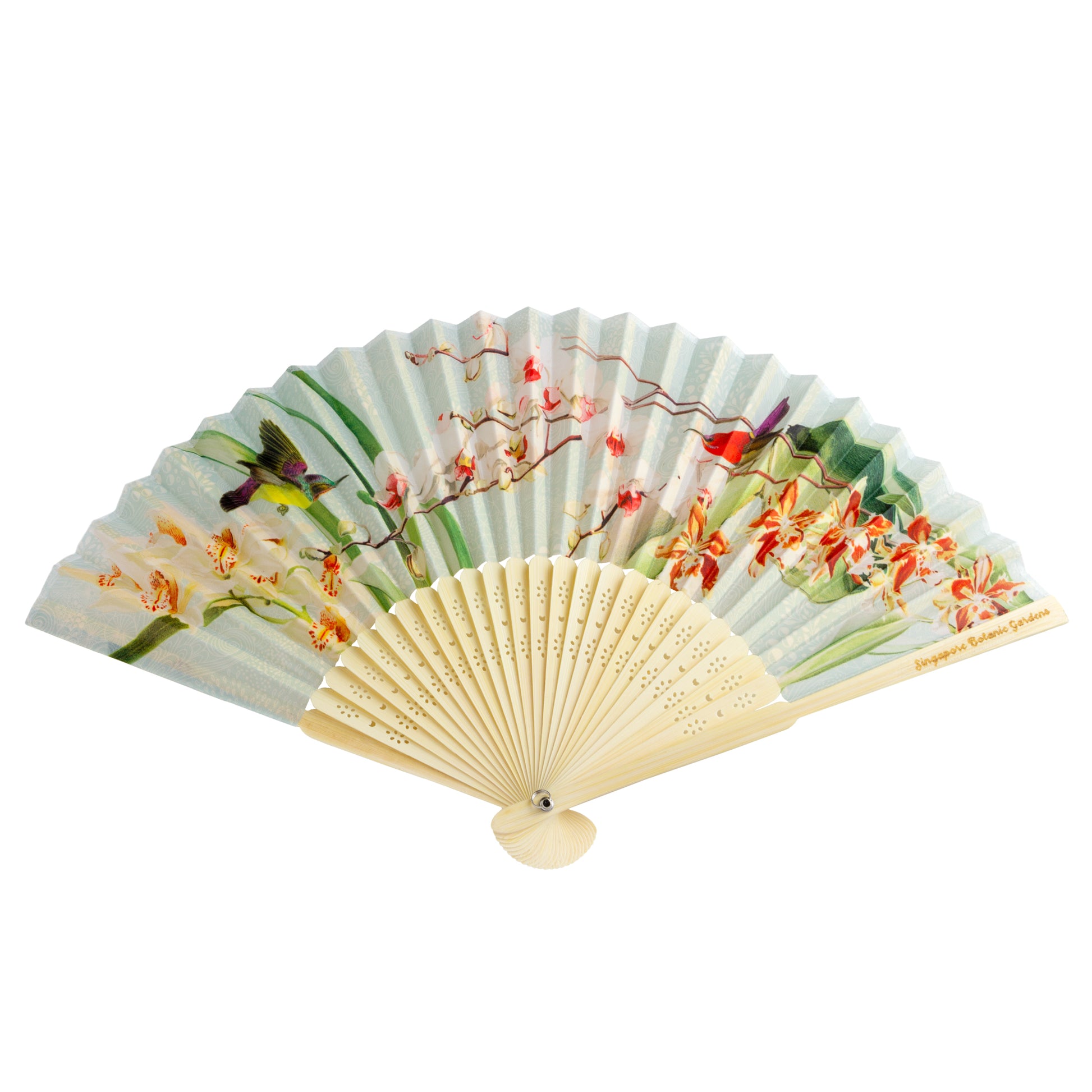 Inspired by the flora and fauna found in the Gardens, the vibrant illustrations are beautifully featured on this fabric fan, capturing the essence of this extraordinary botanical oasis.