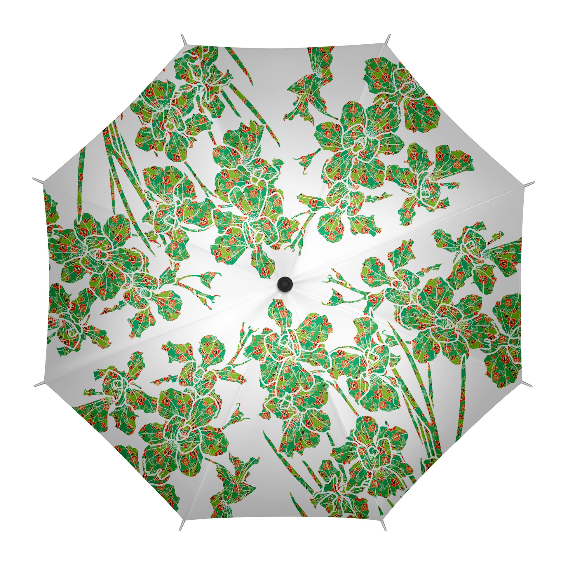 An exclusive design for the Singapore Garden Festival. The Singapore Garden Festival (SGF) unites top landscape and garden designers, florists, and horticulturists from around the world with Singapore's talented horticulturists. This foldable umbrella features intricate Orchid motifs alongside the festival's beloved mascot.