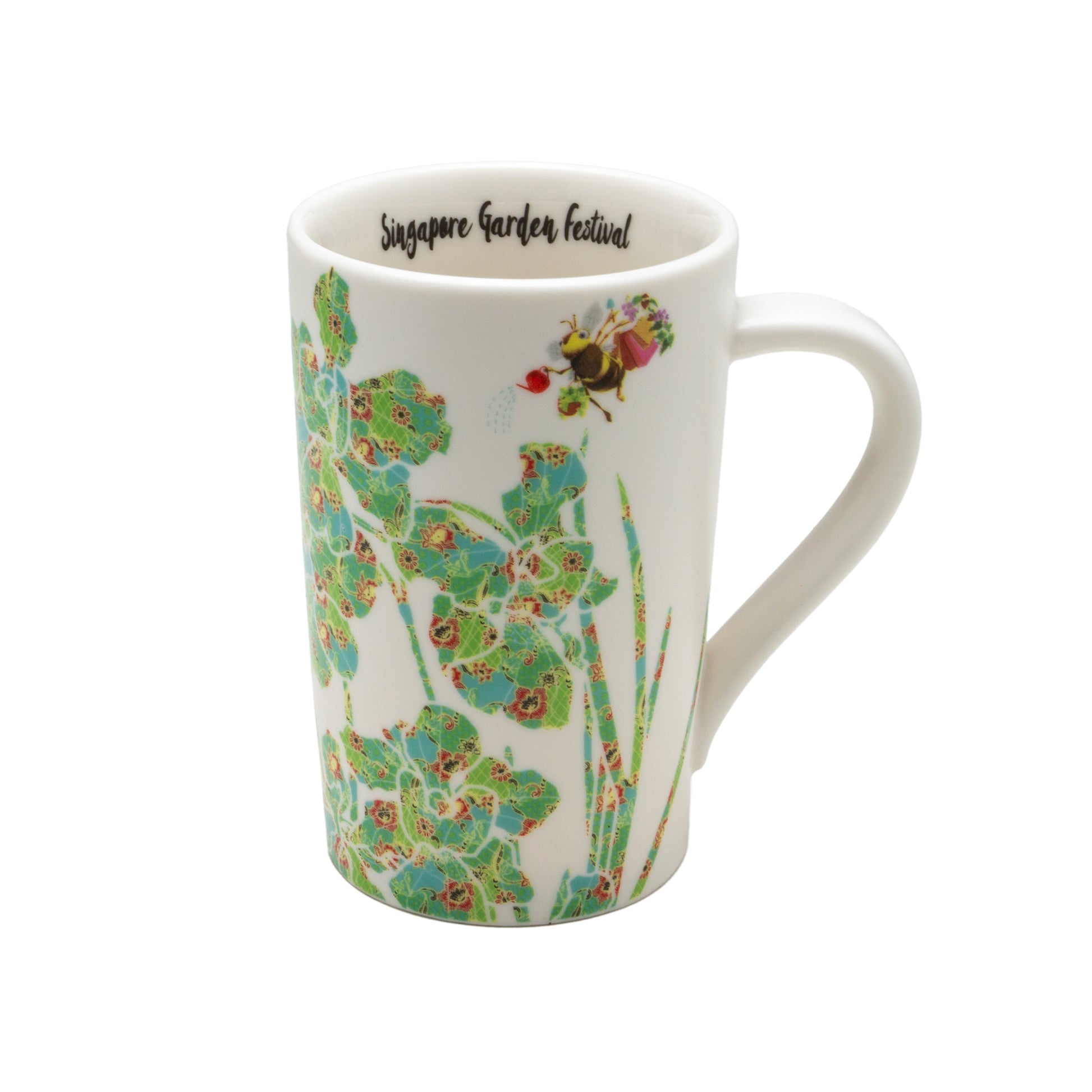 This mug features intricate Orchid motifs alongside the festival's beloved mascot.