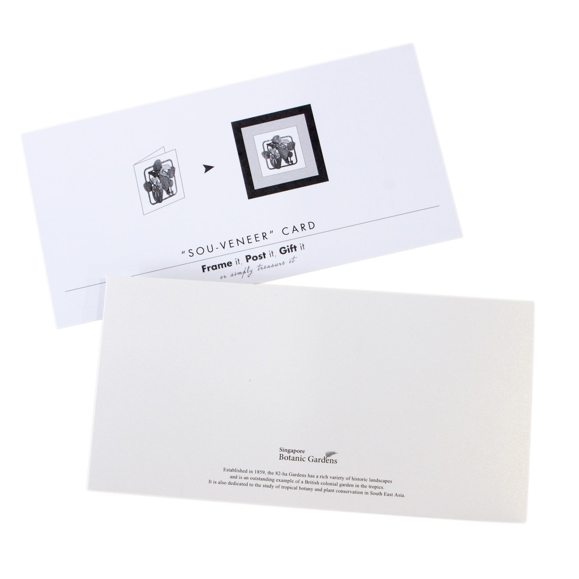 Let this woodcut greeting card transport you to the historic Tanglin Gate, an iconic symbol among the four main entrances located in the oldest part of the Gardens. Featuring a double opening, the card reveals meticulously carved layers of wood crafted from recycled remnants of FSC-certified hardwood, emphasising its environmentally friendly design, and showcasing fine workmanship inspired by the sculpture’s intricate metalwork. Enclosed in a white envelope with an elegant vellum sheet for your message, it offers heartfelt expressions for loved ones. Beyond a card, it can also be framed as an art piece or placed upright as a display décor. An instantly recognisable keepsake that celebrates a slice of the garden’s heritage.