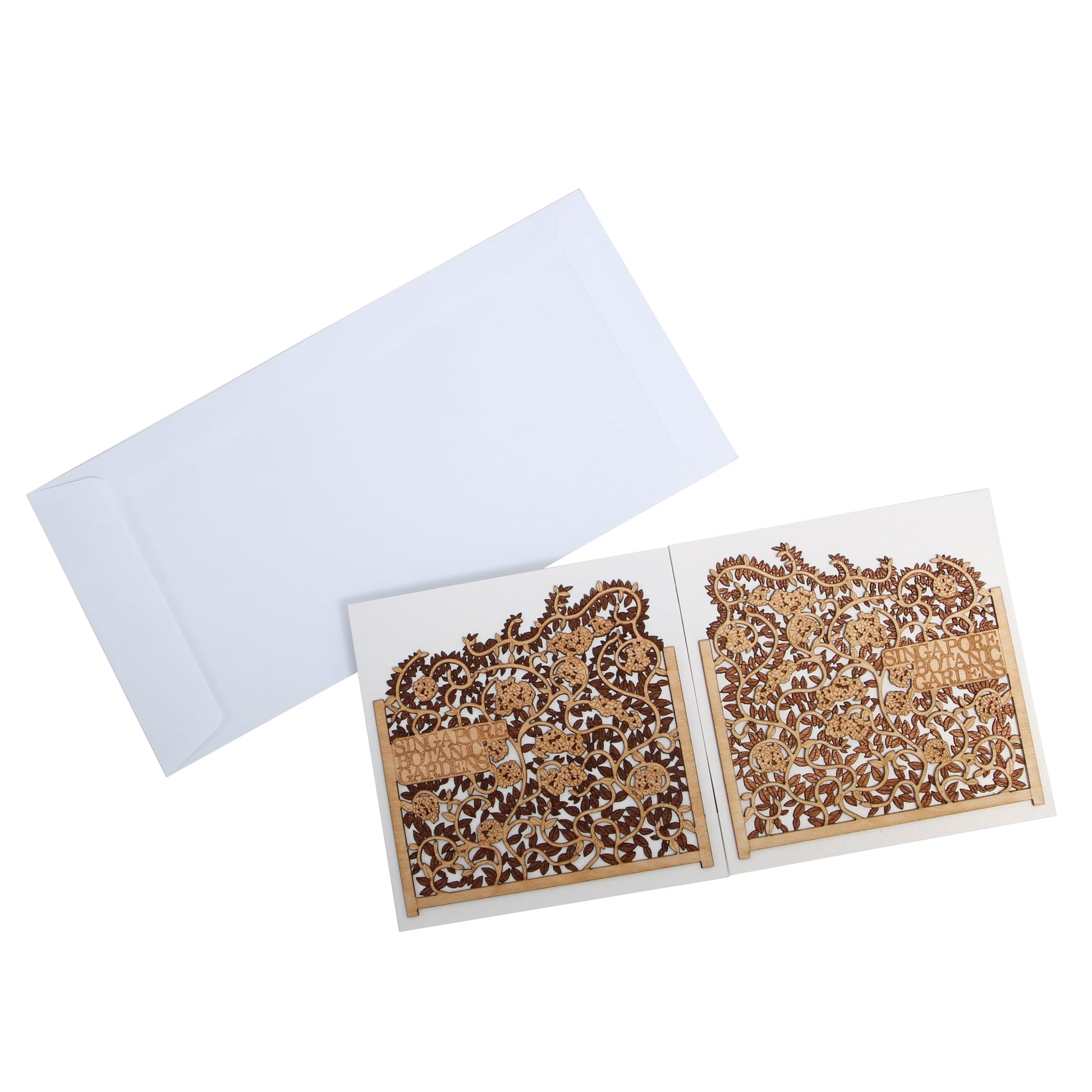 Veneer - Walnut (Greyish Brown), Maple (Bright Brown) Gatefold card type, vellum paper, white envelope